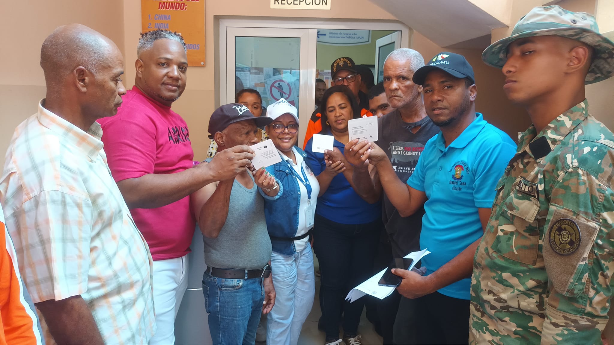 Con una comisión de SUPETRATE, enviada por la encargada nacional Gloria Reyes, su representante regional Ing. Olga Samboy, la encargada provincial Magnolia Reyes y la encargada de campo Lili Vargas (Lili Fede), nuestro alcalde y el alcalde Licdo. Orangel Sena Díaz y Nancy Mateo, la mañana de hoy miércoles 5 de diciembre fue iniciada la entrega del BONO NAVIDEÑO a empleados de ornato y chóferes de nuestro ayuntamiento.
